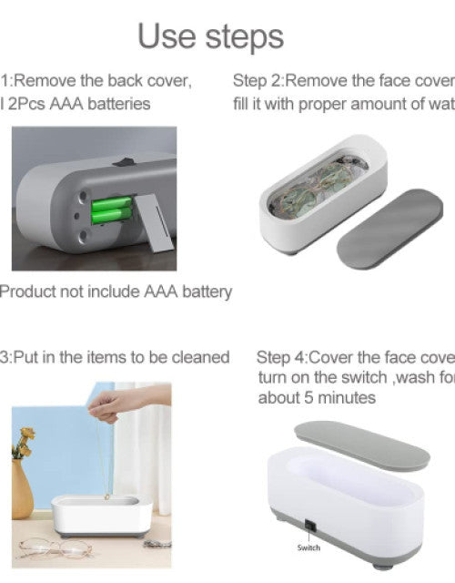 Mini Ultrasonic Cleaner for Jewelry & Eyeglasses - Portable Cleaning Machine