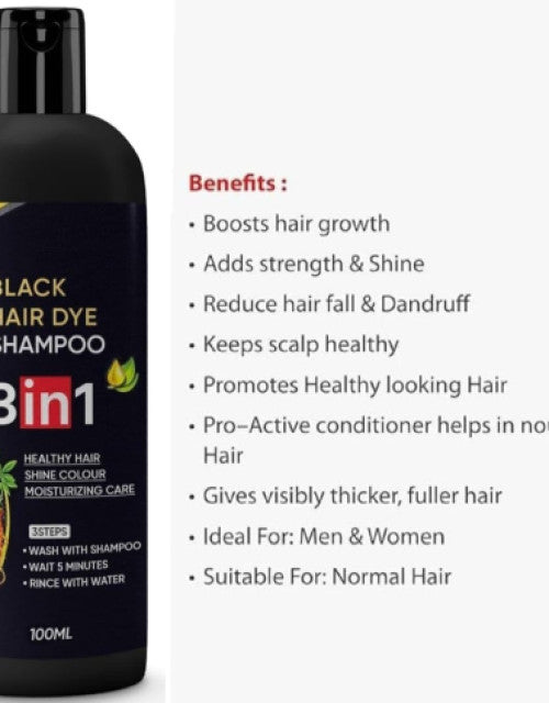 Herbal 3 in 1 Hair Dye Instant Black Hair Shampoo for Women & Men ( Pack Of 2 )